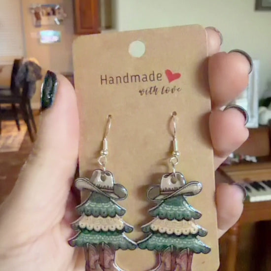 Western Christmas Tree Dangle Earrings